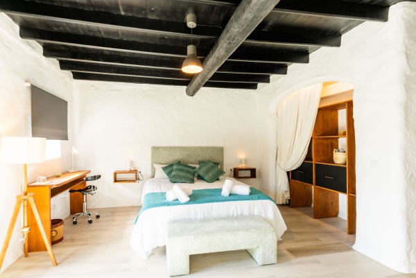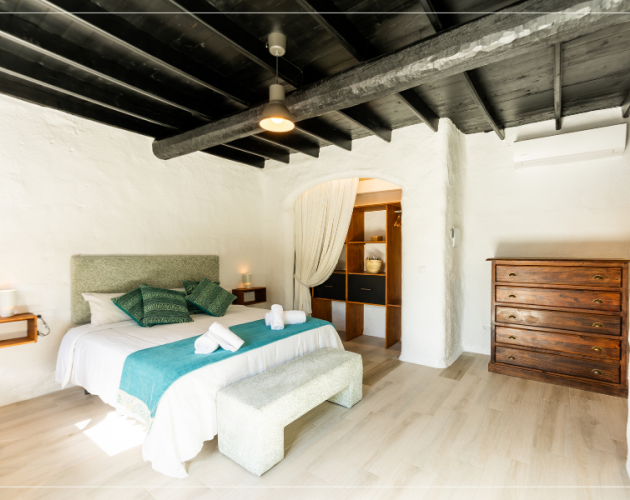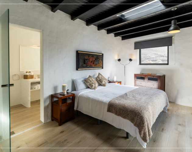 Elegante y natural, equipada con cama doble, una gran ducha y vistas al entorno volcánico. Con terraza exterior y acceso directo al patio central, es ideal para quienes buscan serenidad con estilo.